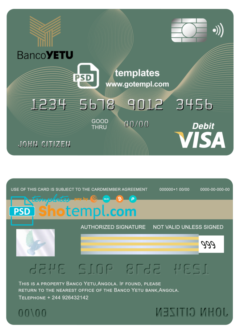 Angolan Banco Yetu bank visa card debit card example in PSD format, fully editable