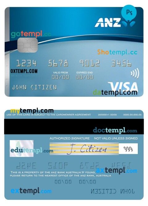 Completely editable Australia ANZ Low Rate credit visa card template in PSD format.