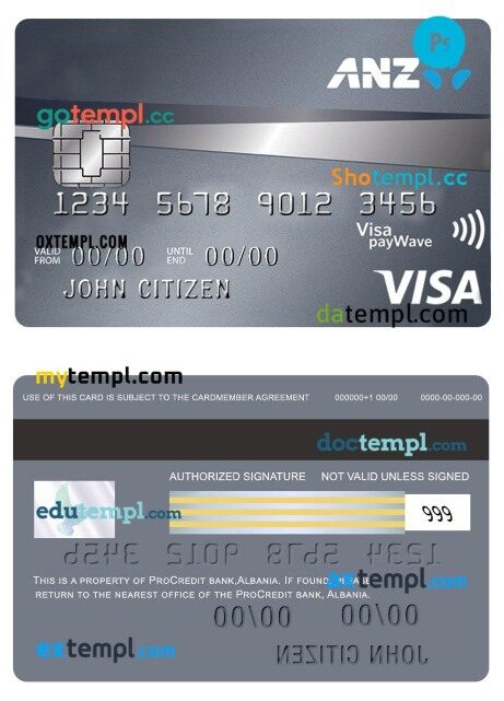Completely editable Australia ANZ Platinum credit visa card template in PSD format.