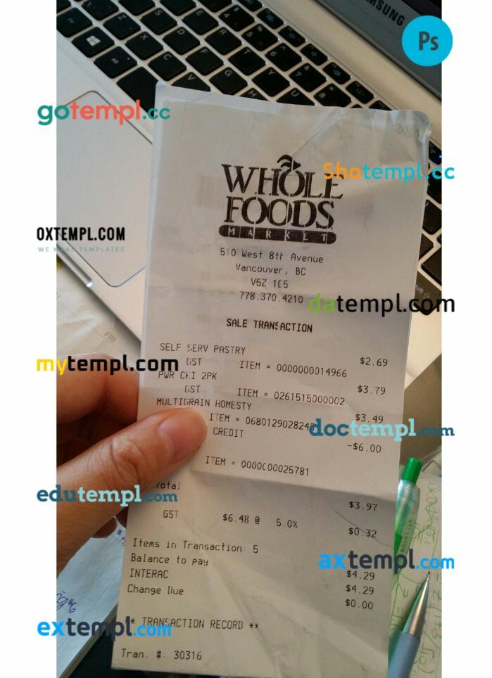 Fully editable retail purchase bill, supermarket shopping receipt, sum invoice check, total cost store sale paper, detailed grocery payment receipt PSD samples on our stores –