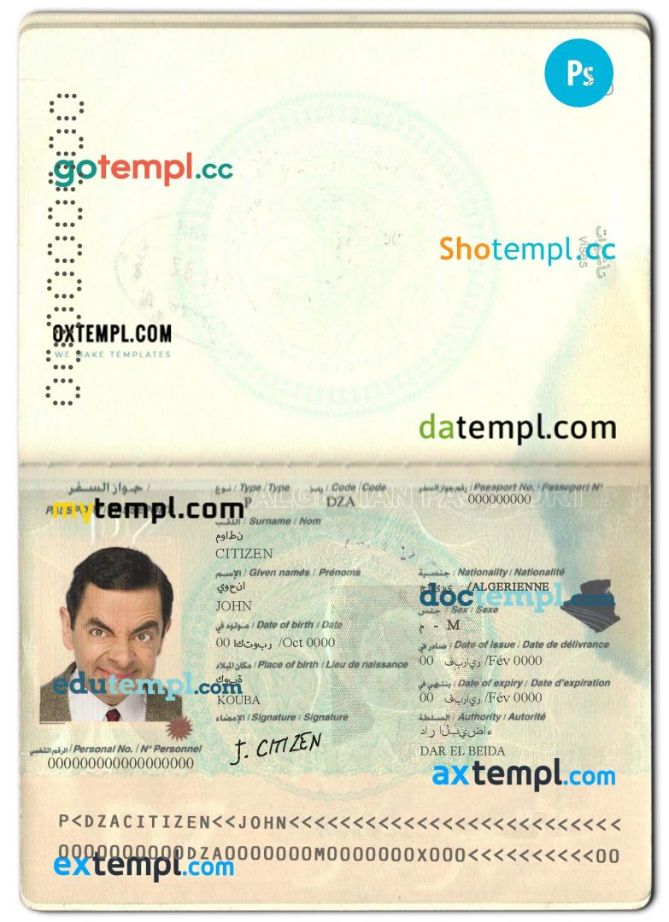 Algeria passport Photoshop template two in one with photo look and scan PSD files, which has a clean design and multi-functional solution.