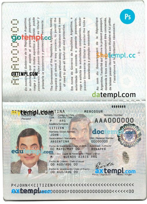 Argentinian passport template two in one with editable PSD photo taken image. This template is fully customizable and compatible with Adobe Photoshop.