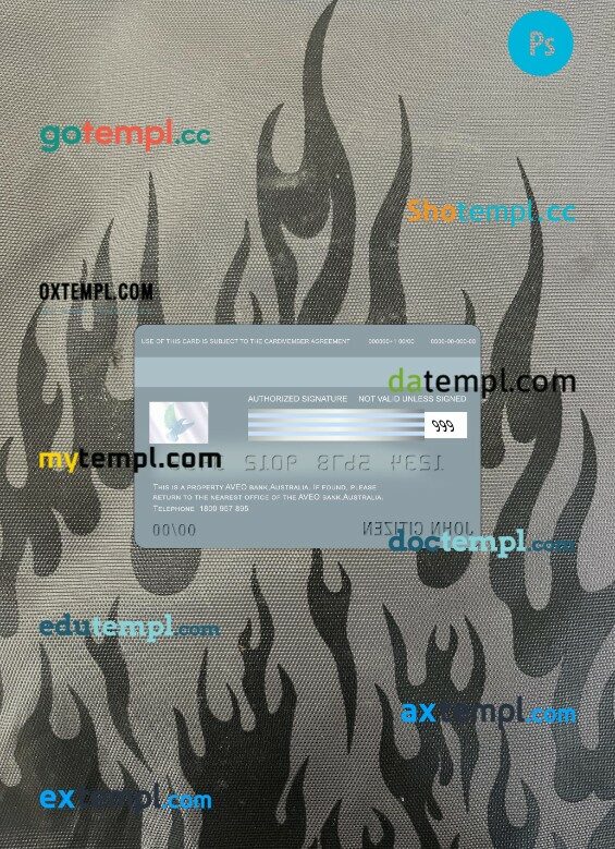 Our Australia Aveo bank visa card PSD template provides a multi-functional solution with a clean design, providing both the front and back of the card for a realistic look.