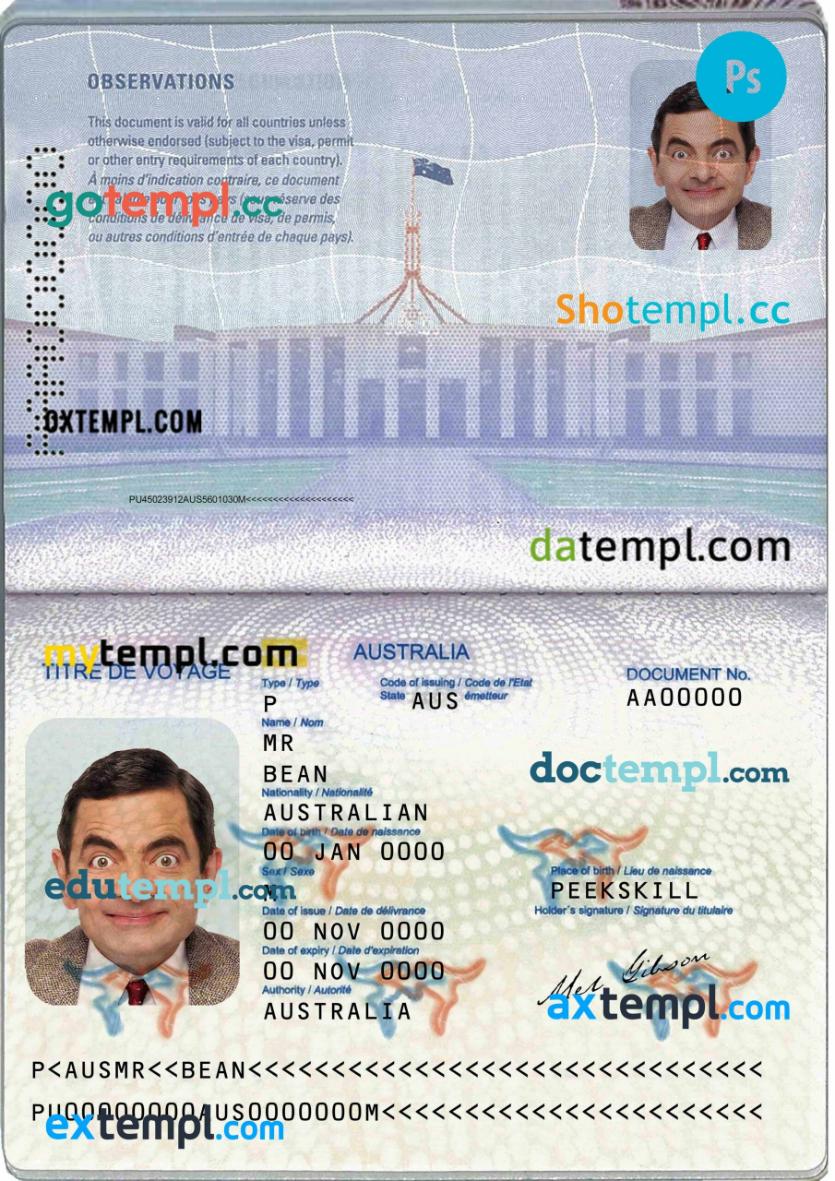 Australian passport Photoshop template two in one with photo look and scan PSD files, which has a clean design and multi-functional solution.
