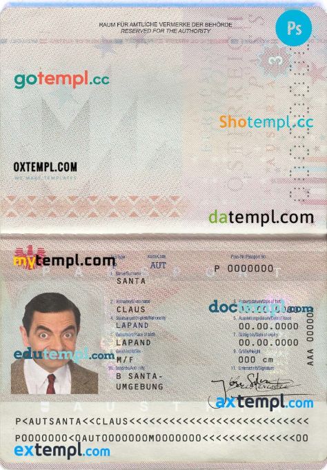 Austrian passport Photoshop template two in one with snapshot and scan PSD files, which has a clean design and multi-functional solution.