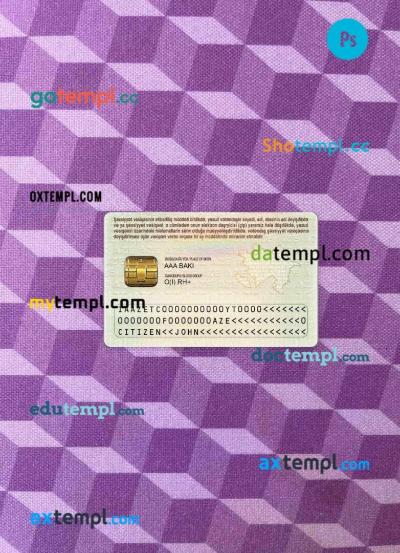 Azerbaijan ID card editable PSD files, scan look and photo-realistic look, 2 in 1