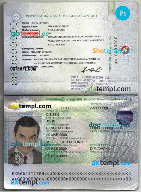 Bangladesh passport Photoshop template two in one with photo look and scan PSD files, which has a clean design and multi-functional solution.