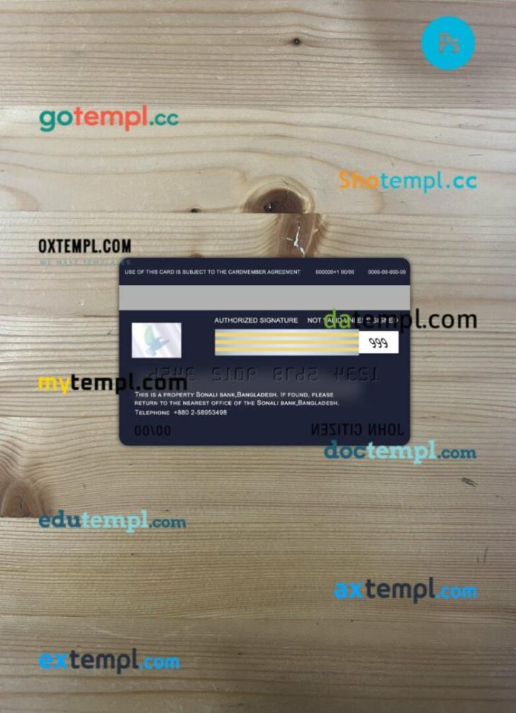 Bangladesh Sonali Bank bank visa card PSD scan and photo-realistic snapshot, 2 in 1