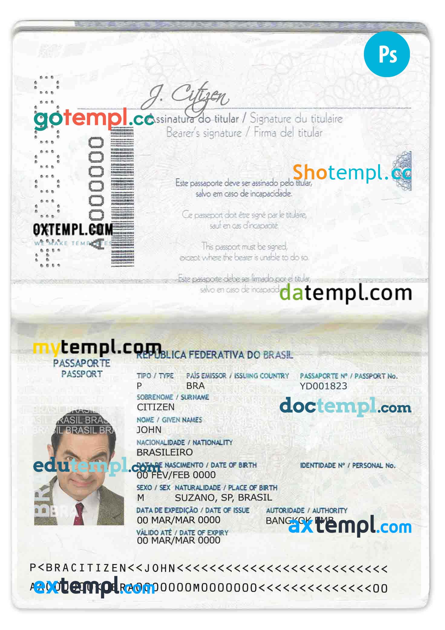 Brazil passport Photoshop template two in one with photo look and scan PSD files, which has a clean design and multi-functional solution.