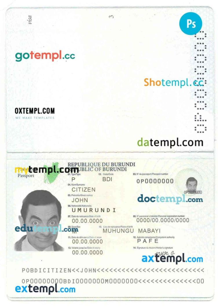 Burundi passport Photoshop template two in one with photo look and scan PSD files, which has a clean design and multi-functional solution.
