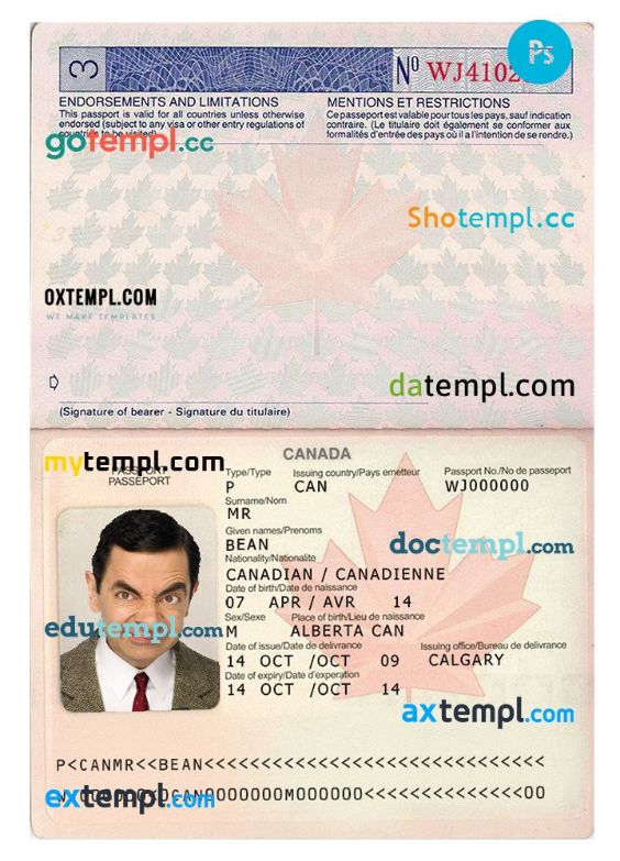 Canada passport template two in one with editable PSD photo taken image. This template is fully customizable and compatible with Adobe Photoshop.