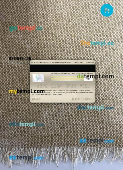 Our Central African Republic Bank of Central African States (BEAC) bank visa card PSD template provides a multi-functional solution with a clean design, providing both the front and back of the card for a realistic look.