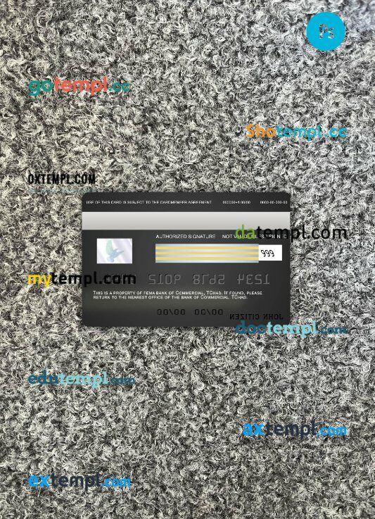 Our Chad Commercial bank Tchad visa card PSD template provides a multi-functional solution with a clean design, providing both the front and back of the card for a realistic look.