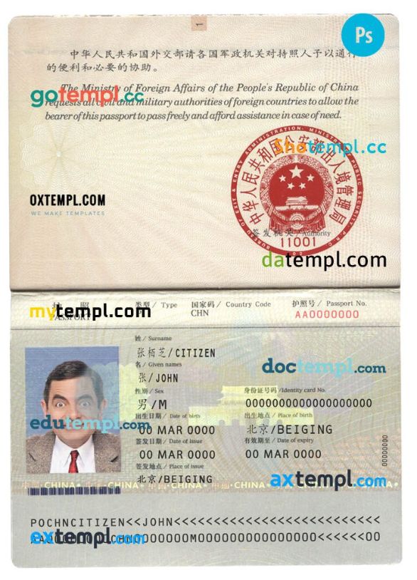 China passport Photoshop template two in one with photo look and scan PSD files, which has a clean design and multi-functional solution.