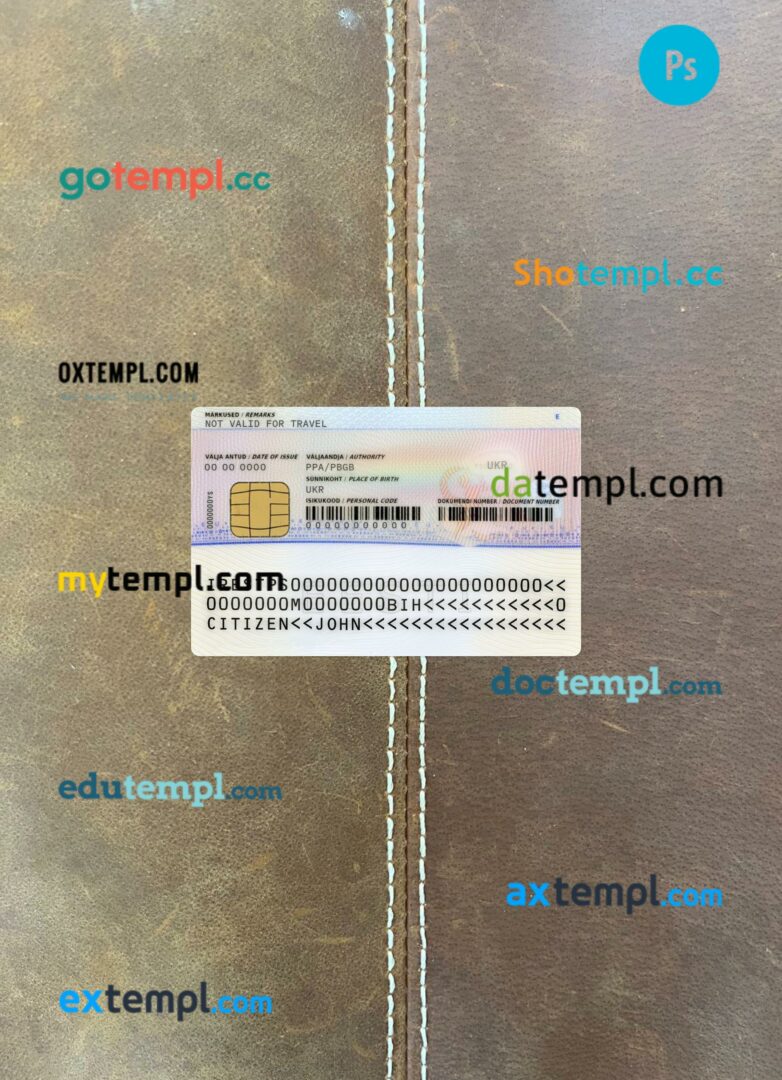 Our Estonian residence permit card template offers two options in one package: editable PSD files for both photo and scan looks. Compatible with Adobe Photoshop, this template is fully customizable, requiring only basic editing knowledge to personalize.
