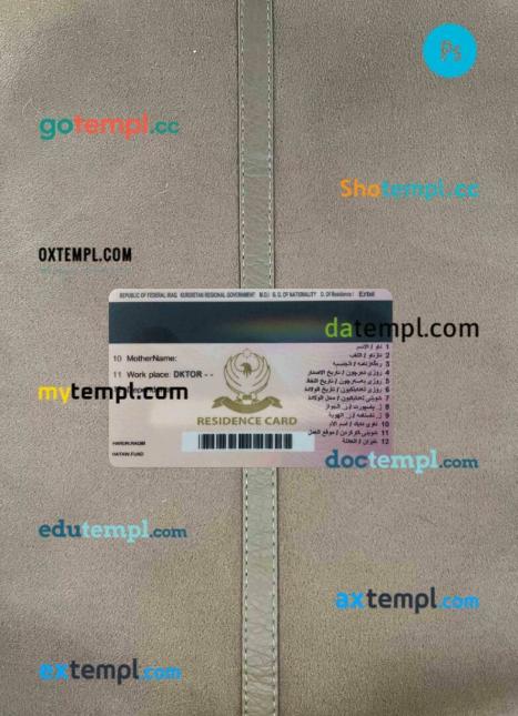 Our Iraqi (Kurdistan) residence card template offers two editable choices in one package: editable PSD files for both photo and scan looks. Compatible with Adobe Photoshop, this template is fully customizable, requiring only basic editing knowledge to personalize.