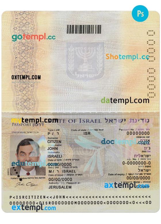 Israel passport Photoshop template two in one with photo look and scan PSD files, which has a clean design and multi-functional solution.