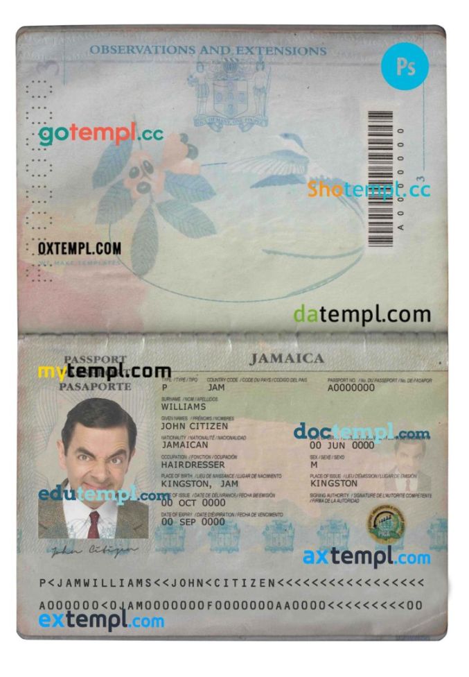 Jamaica passport Photoshop template two in one with photo look and scan PSD files, which has a clean design and multi-functional solution.