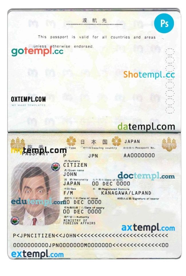Japan passport template two in one with editable PSD photo taken image. This template is fully customizable and compatible with Adobe Photoshop.