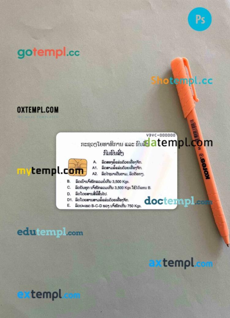 Laos driving license PSD files, scan look and photographed image, 2 in 1