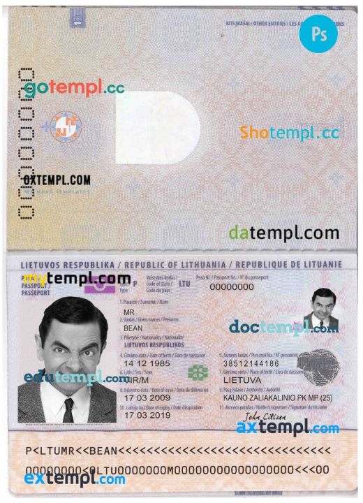 Lithuania passport Photoshop template two in one with photo look and scan PSD files, which has a clean design and multi-functional solution.