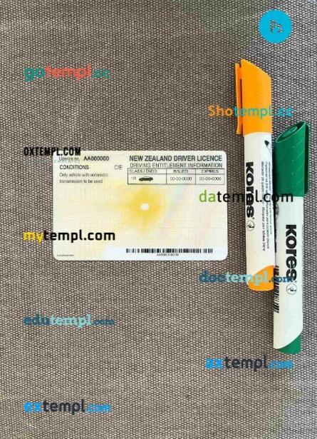 Our New Zeland driver’s license template offers two options in one package: editable PSD files for both photo and scan looks.