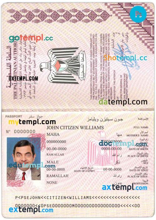 Palestine passport editable PSD files, scan and photo look templates, 2 in 1