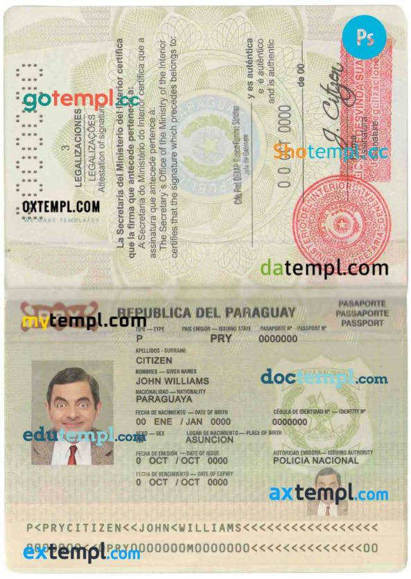 Paraguay passport Photoshop template two in one with photo look and scan PSD files, which has a clean design and multi-functional solution.