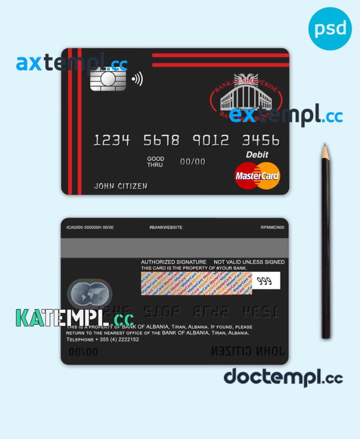 sample Albania Bank of Albania bank mastercard debit card template in PSD format, fully editable download