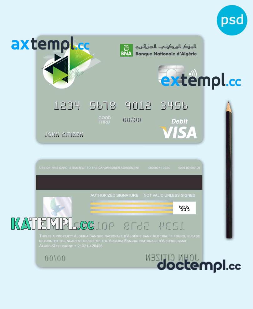 sample Algeria Banque nationale d’Algérie (BNA) bank visa card debit card template in PSD format, fully editable download