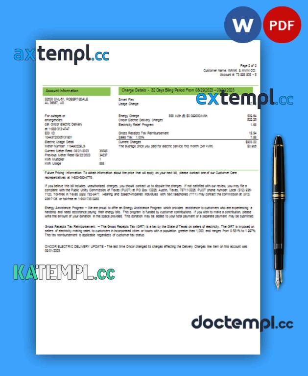 sample Ameren Missouri electricity business utility bill, Word and PDF template, 2 pages download
