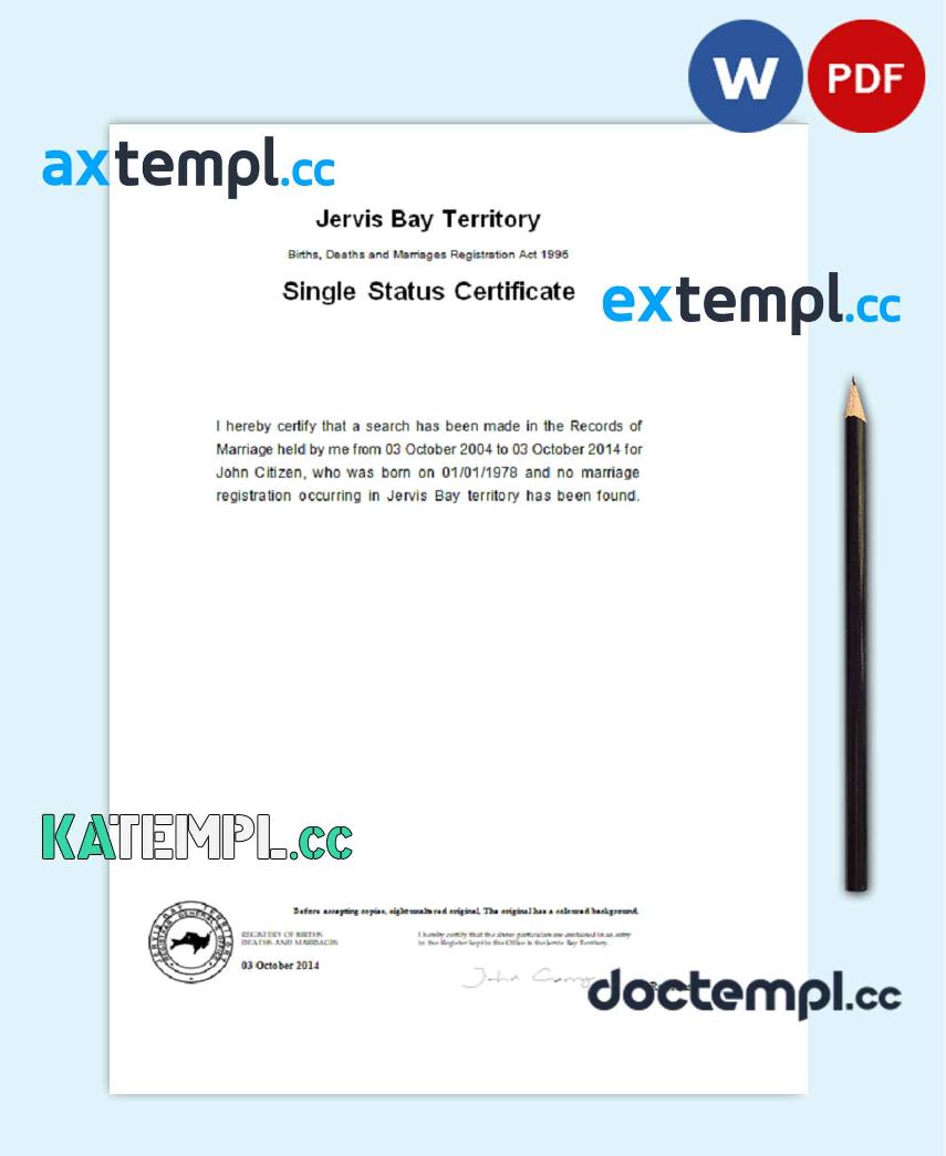 sample Australia Jervis Bay Territory divorce certificate template in Word and PDF format download