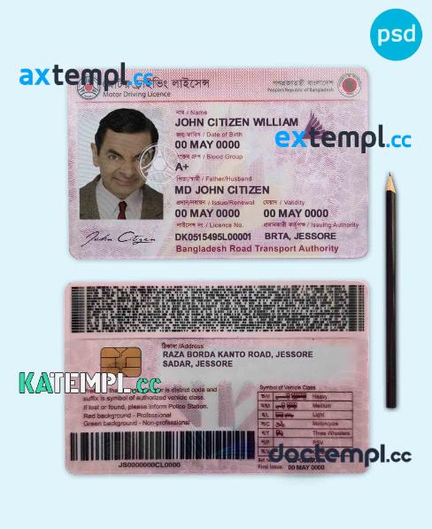 sample Bangladesh driving license template in PSD format, completely editable, version 3 download