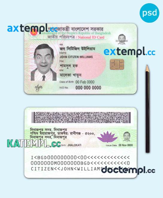 sample Bangladesh ID template in PSD format, fully editable download