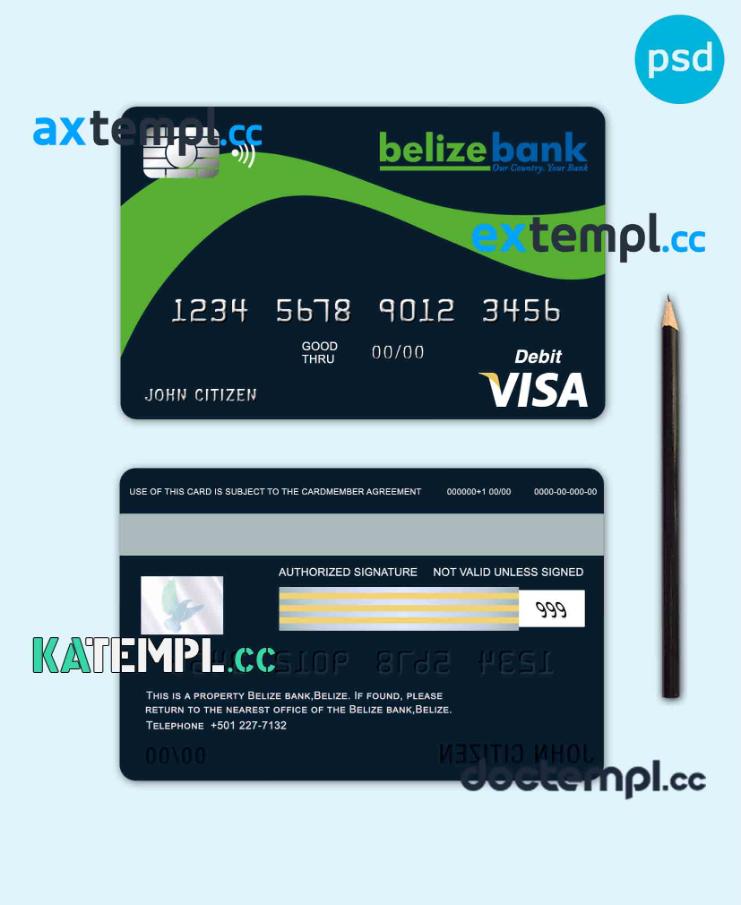 sample Belize Belizebank visa card debit card template in PSD format, fully editable download