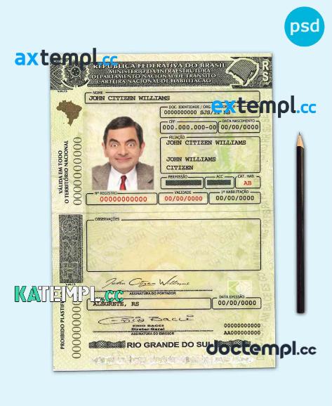 sample Brazil (Rio Grande do Sul) driving license template in PSD format download