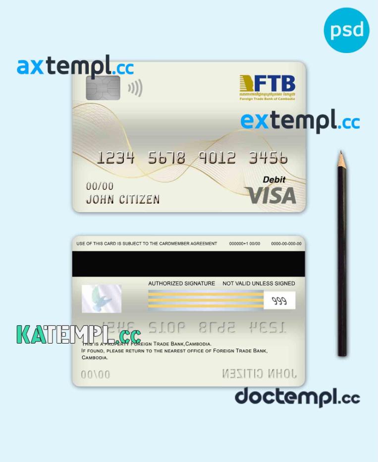 sample Cambodia Foreign Trade Bank of Cambodia bank visa card debit card template in PSD format, fully editable download