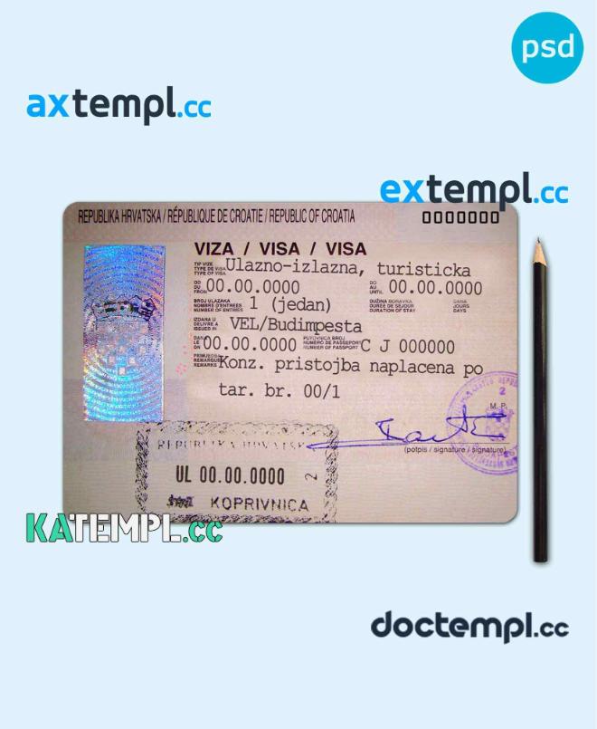 sample Croatia visa PSD template, completely editable, with fonts download