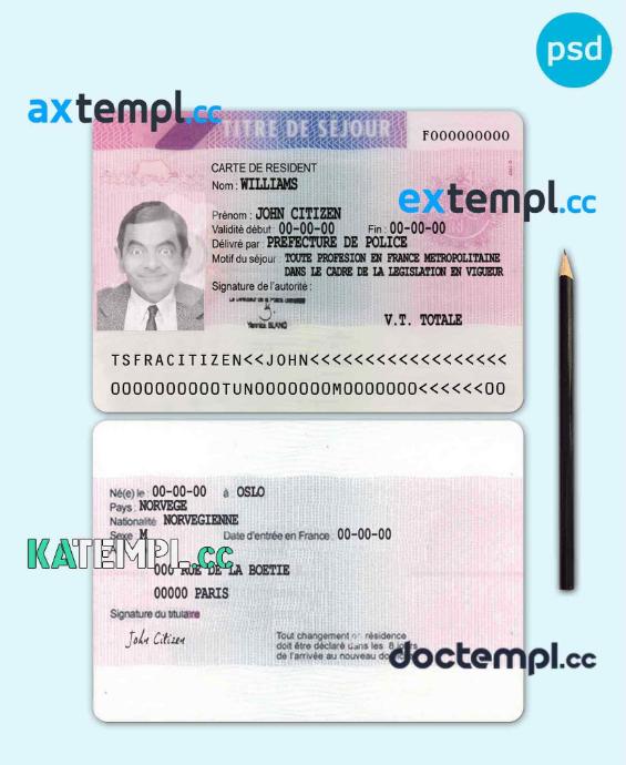 sample FRANCE residence permit card PSD template, version 3 download