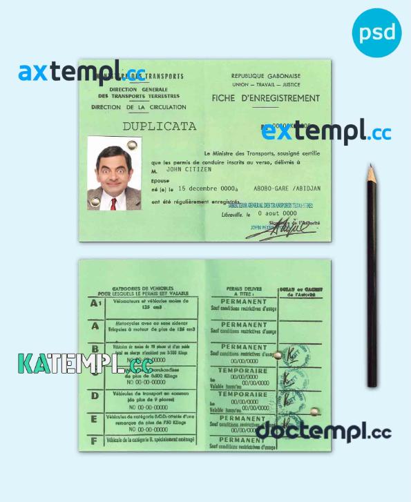 sample GABON driving license PSD template, with fonts download