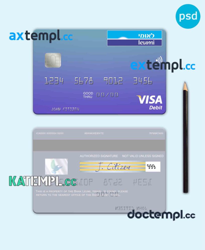 sample Israel Bank Leumi visa card template in PSD format, fully editable download