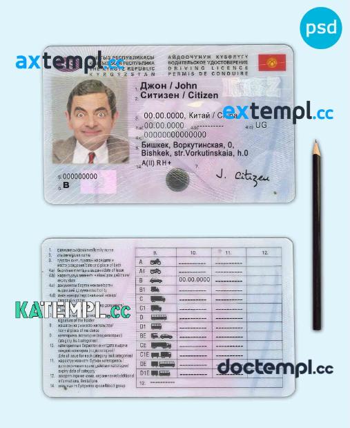 sample Kyrgyzstan driving license template in PSD format, fully editable download