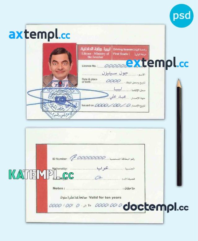 sample Libya driving license template in PSD format, fully editable download