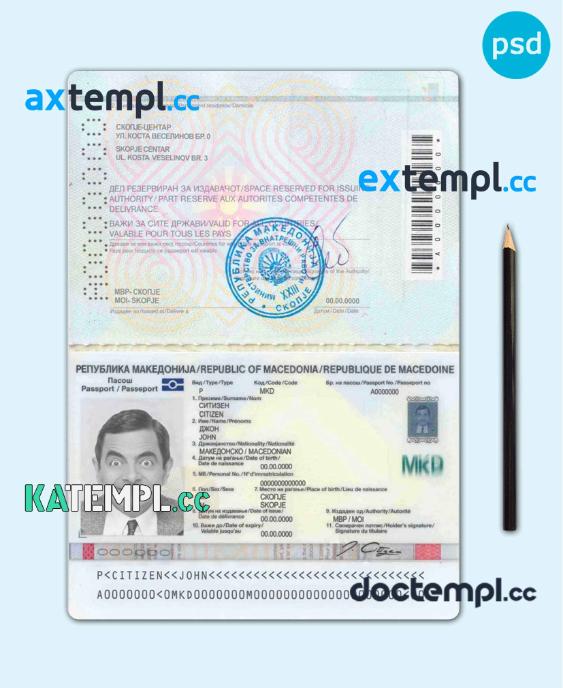 sample Macedonia passport template in PSD format, fully editable, with all fonts download