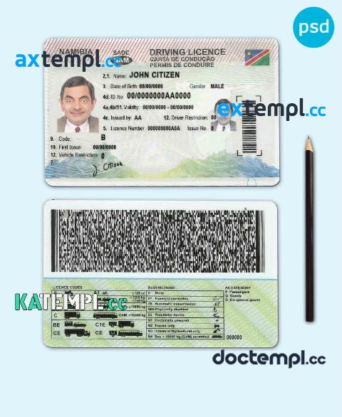 sample Namibia driving license template in PSD format, fully editable, with all fonts download
