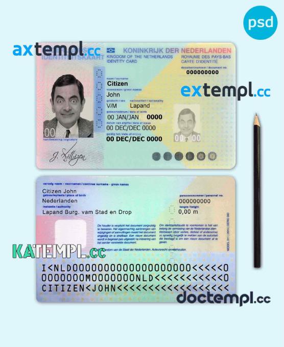 sample Netherlands ID template in PSD format, fully editable download