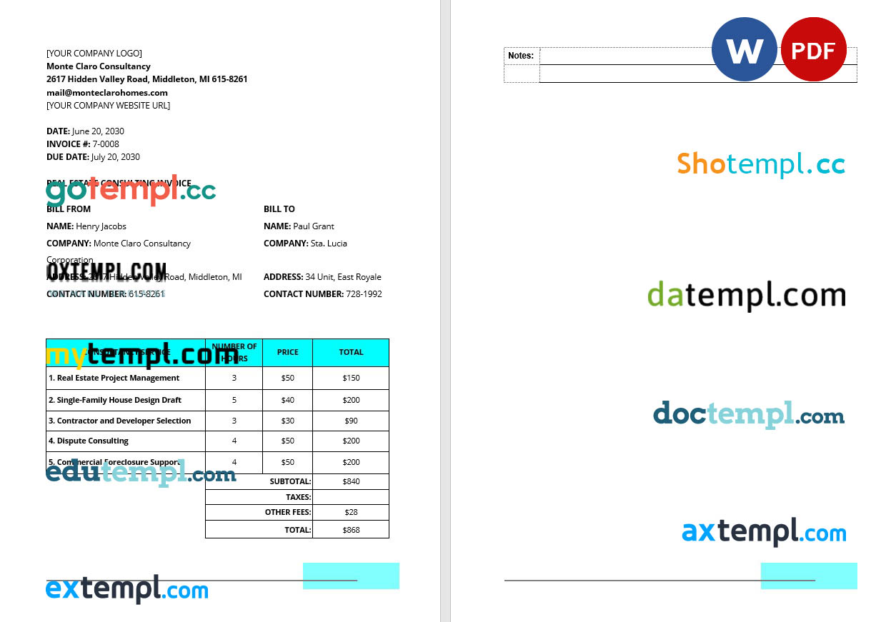 sample Real Estate Consulting Invoice template in word and pdf format download