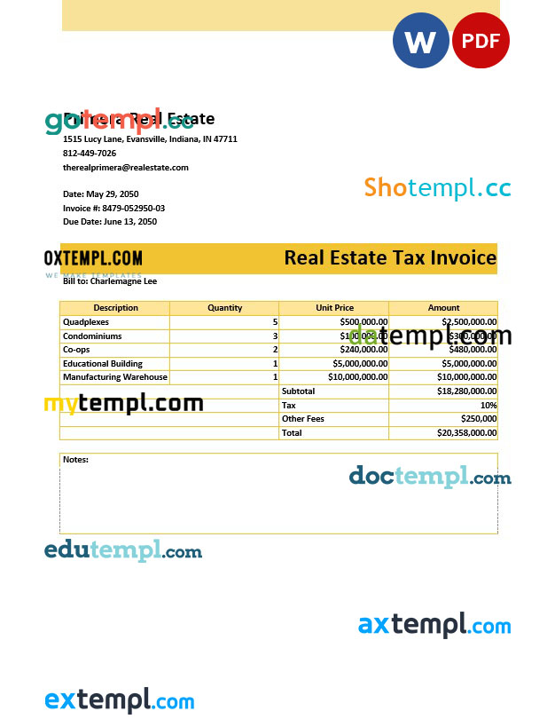sample Real Estate Tax Invoice template in word and pdf format download