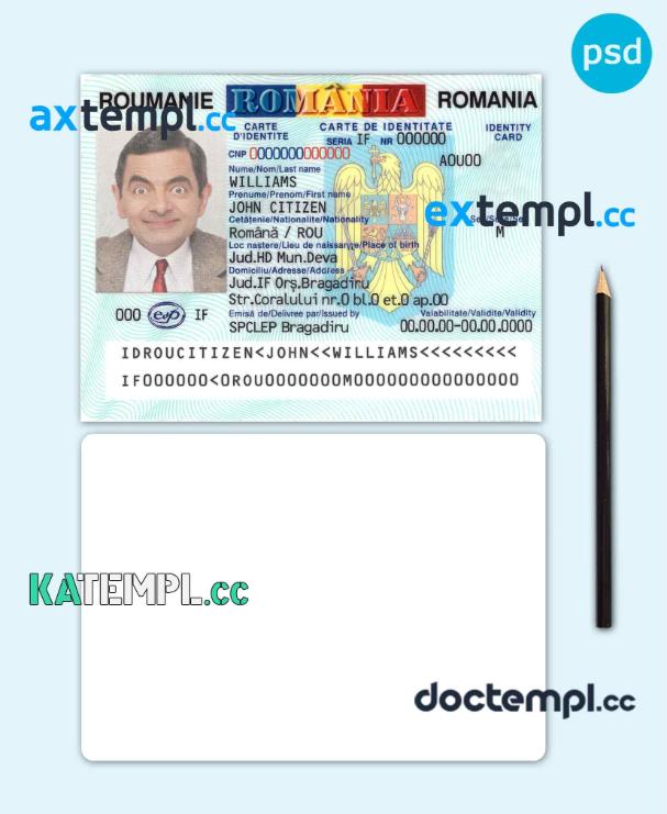 sample Romania ID template in PSD format, fully editable download