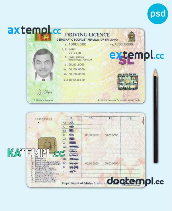 sample Sri Lanka driving license template in PSD format, fully editable download